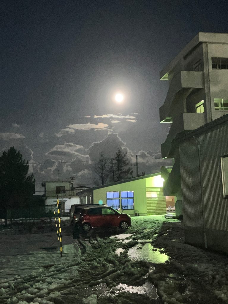夜空も晴れ渡り、お月様が煌々と白い雲を照らしていました。