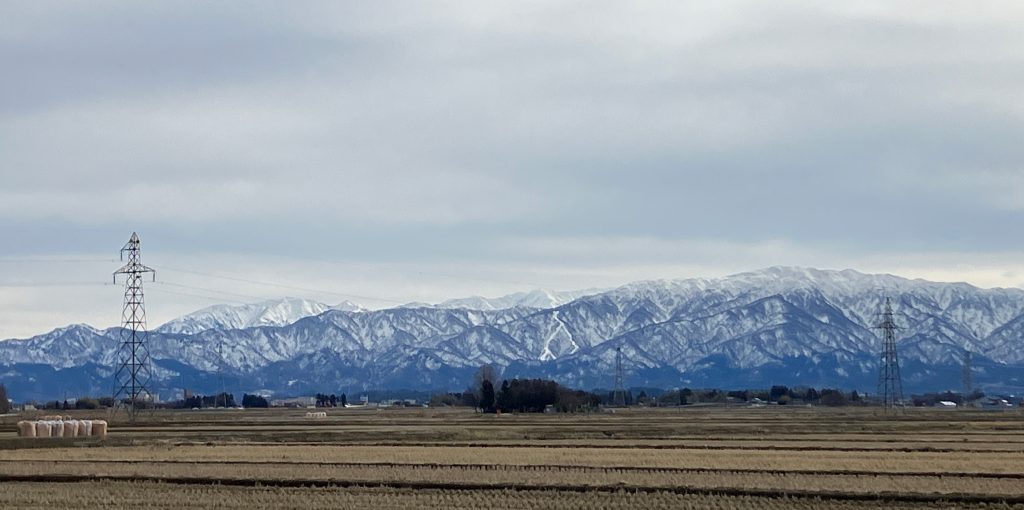 蒼い山に、白い雪のラインが綺麗でした。